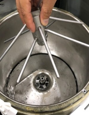 내부 아지테이터와 밑판을 분리합니다. 아지테이터는 분해시 시계 반대방향, 조립시 시계방향입니다. 밑판은 아지테이터 분리 후 그냥 꺼내시면 되는데 날카롭기 때문에 조심하셔야 합니다.