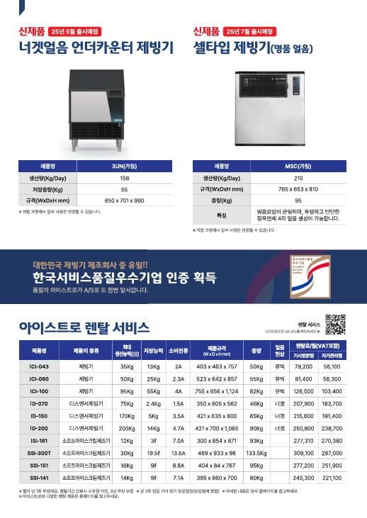 오늘은 대한민국 대표 제빙기 아이스트로의 제빙기 카다로그를 업로드하겠습니다. 25년 기준입니다.