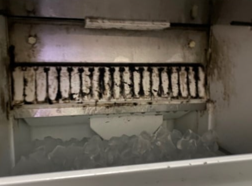 아래는 제빙기 내부의 오염 실태를 보여주는 이미지입니다. 제빙기 위생 관리는 소비자들의 건강과 직결되는 중요한 문제이므로 관련 업계의 철저한 관리와 소비자들의 지속적인 관심이 필요합니다.