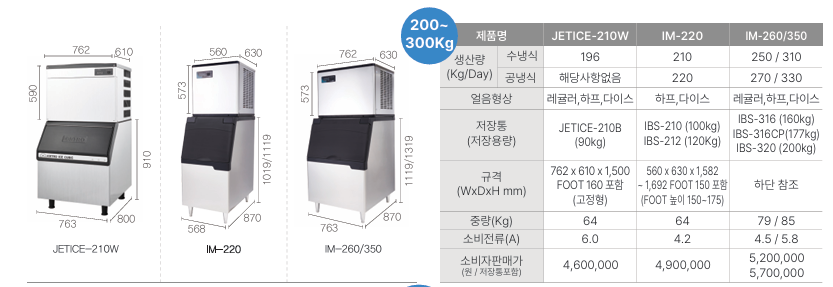 생산능력도 중요하지만 그것보다 중요한 건 얼음 보관능력입니다. 얼음의 수요가 몰리는 아침이나 점심무렵에는 아무리 생산능력이 좋은 제빙기라 하더라도 수요를 따라 갈 수가 없기에 가급적이면 보관능력이 크면 좋으나, 반대로 얼음이 오래되면 얼음 일부가 녹거나 해서 상태가 좋지 않은 얼음이 생길 수 있답니다.